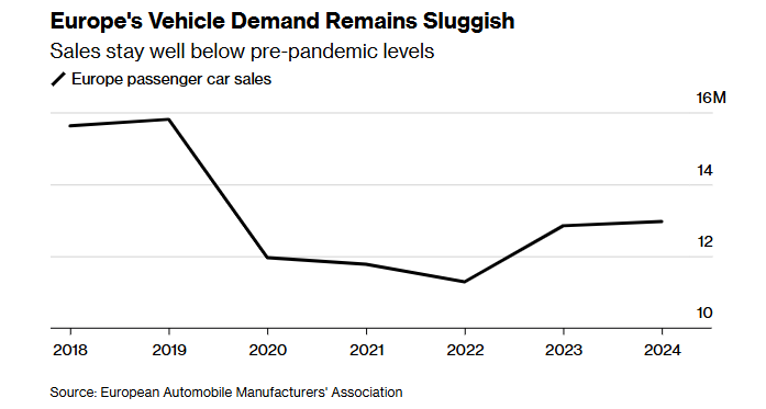 According to the European Association of Automobile Manufacturers, deliveries to Europe grew by only 0.9% last year, reaching about 13 million vehicles.